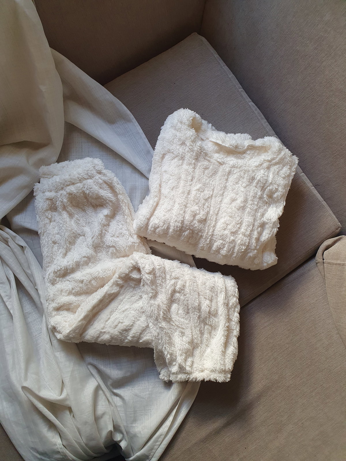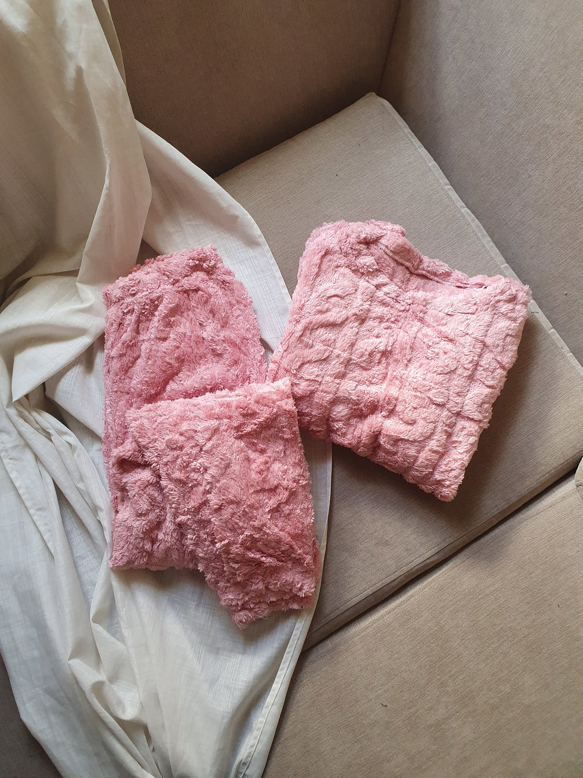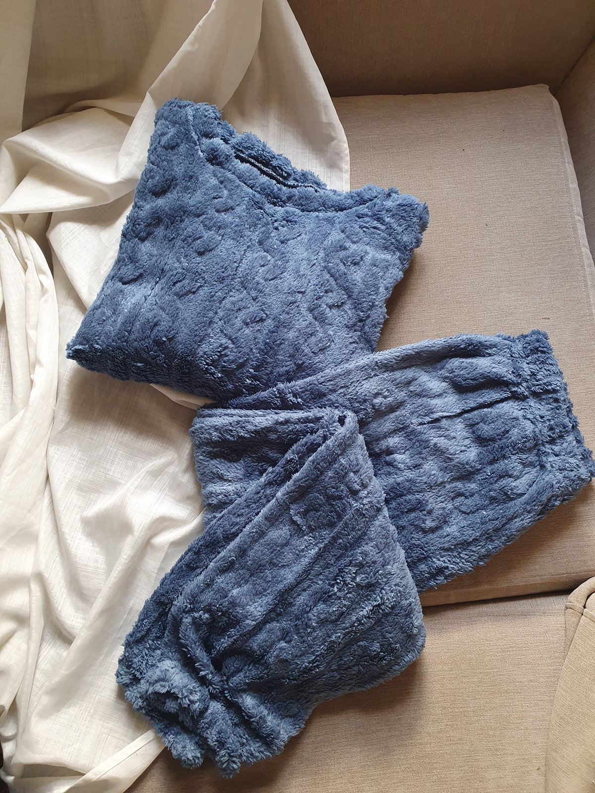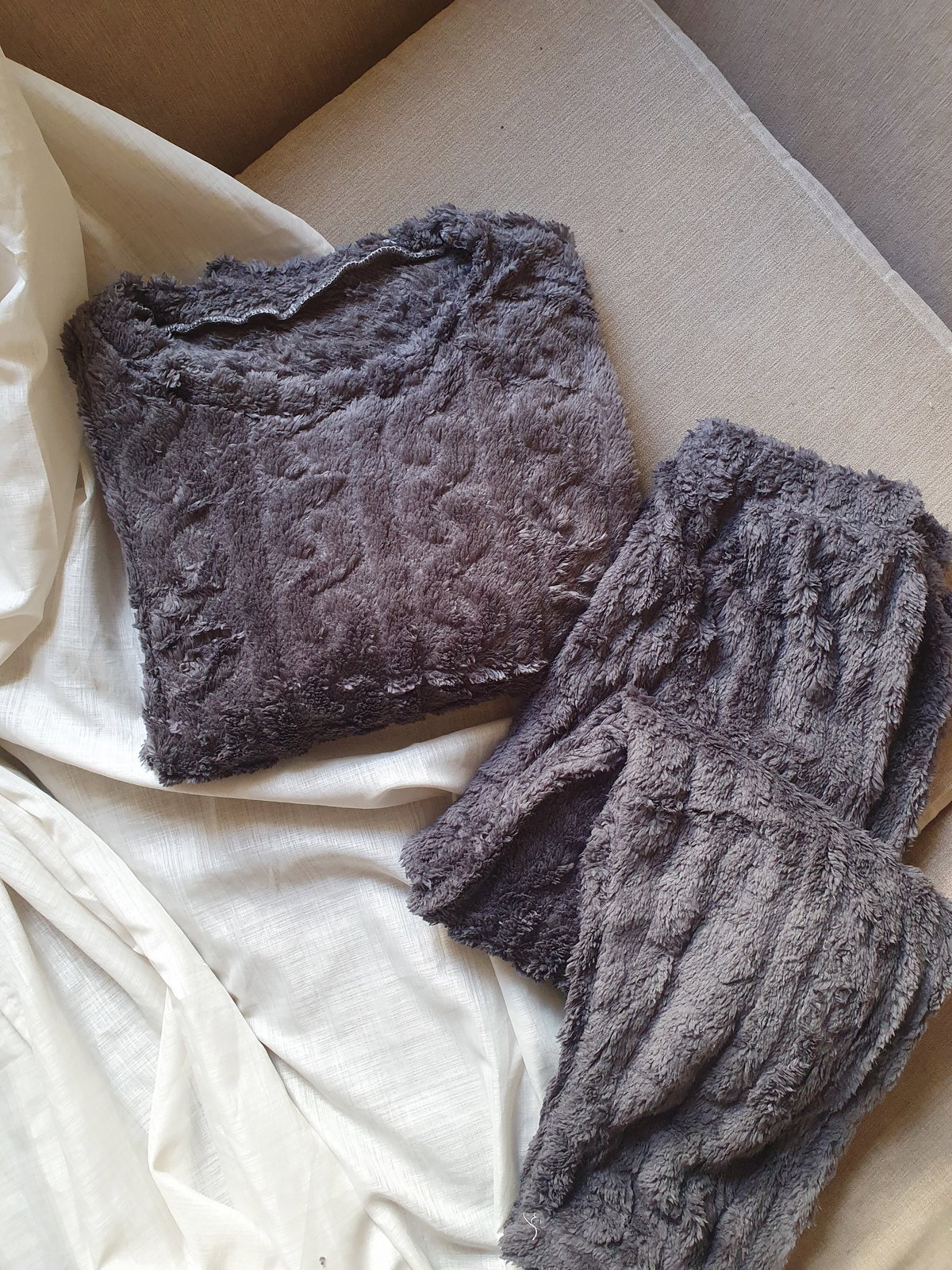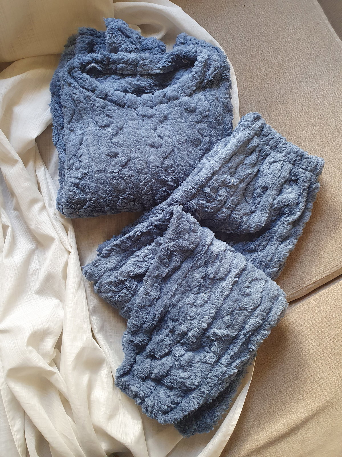 Pijama polar soft importado texturado con puño en buzo y pantalón