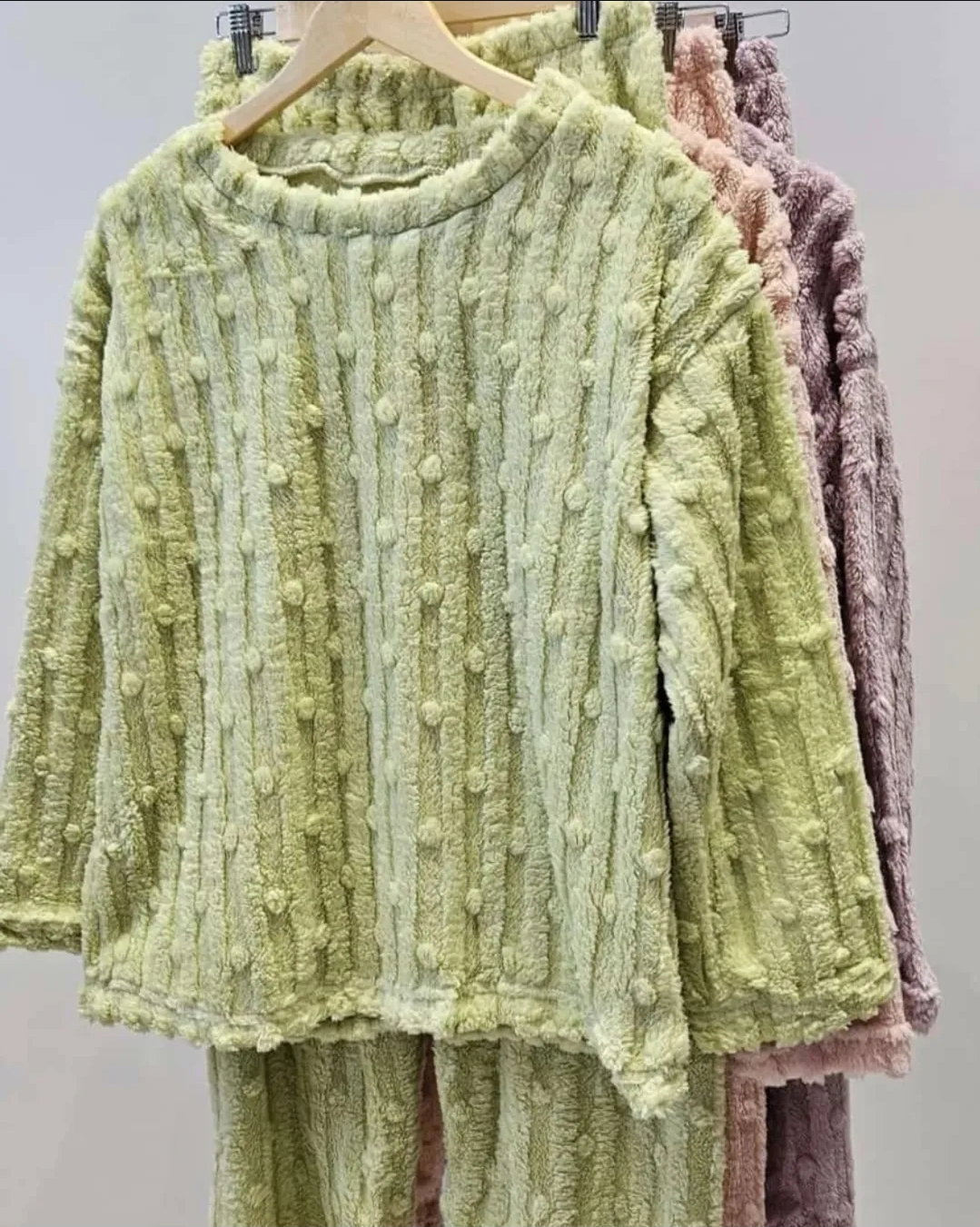 Pijama de plush super calentito diseño con pelotitas muy delicado