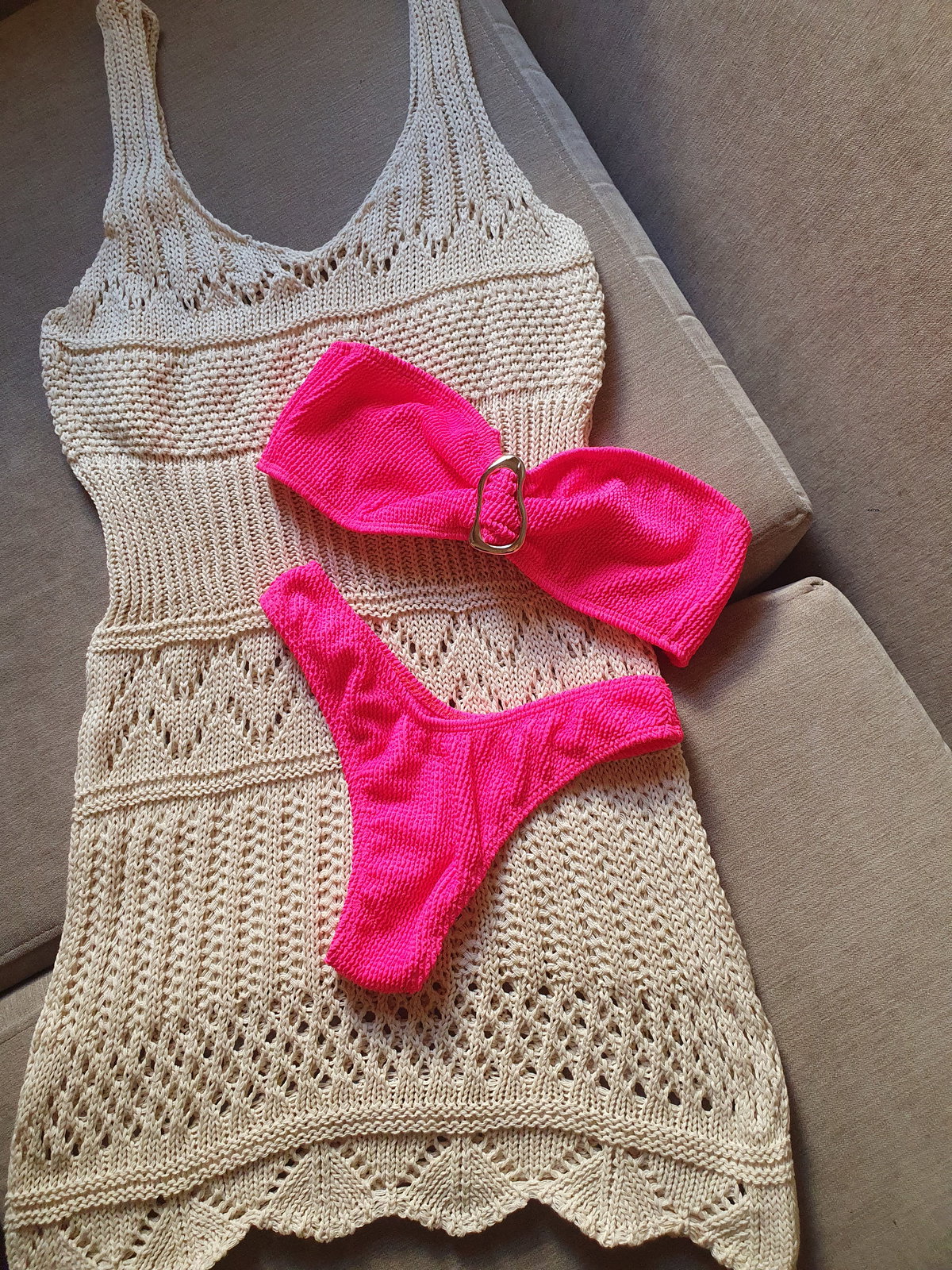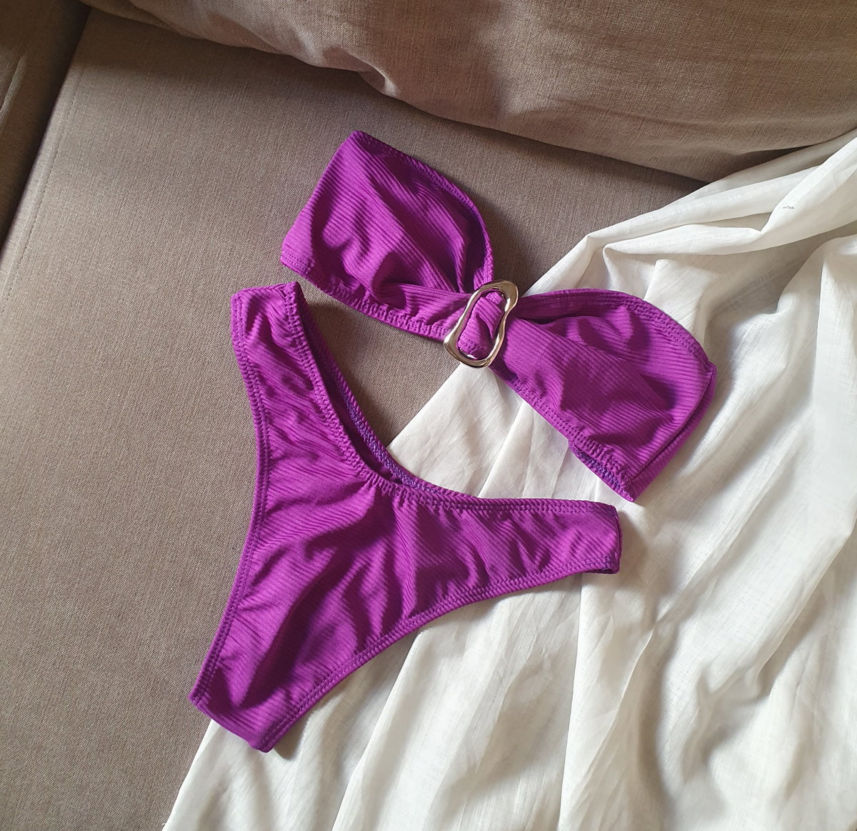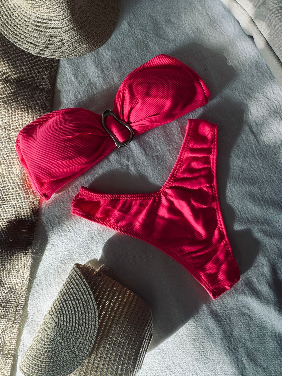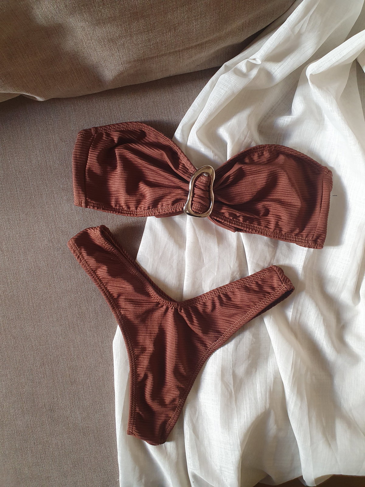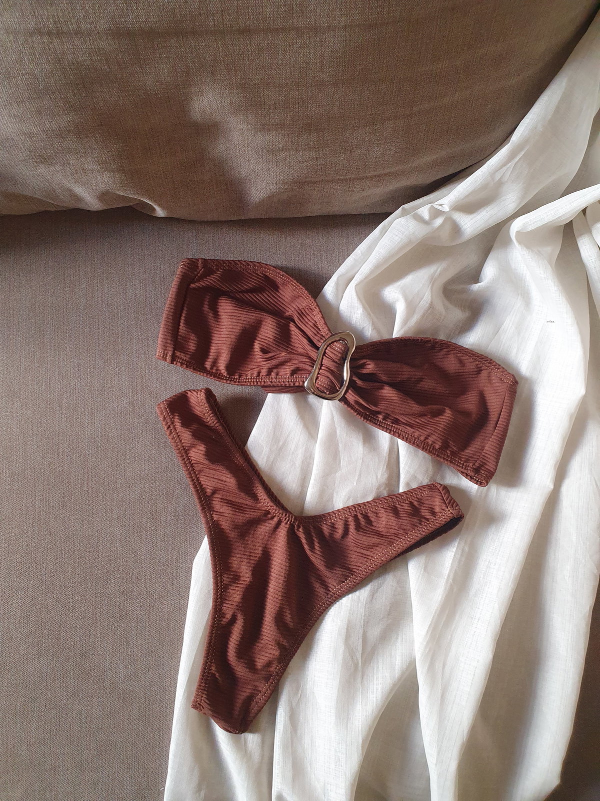 El corpiño es ideal para evitar esas marcas con el sol que tanto nos molestan después, ajustable atrás a tu gusto, más apertura para agregar tasas en caso que lo prefieras podes pedirlas. Tela laycra texturada