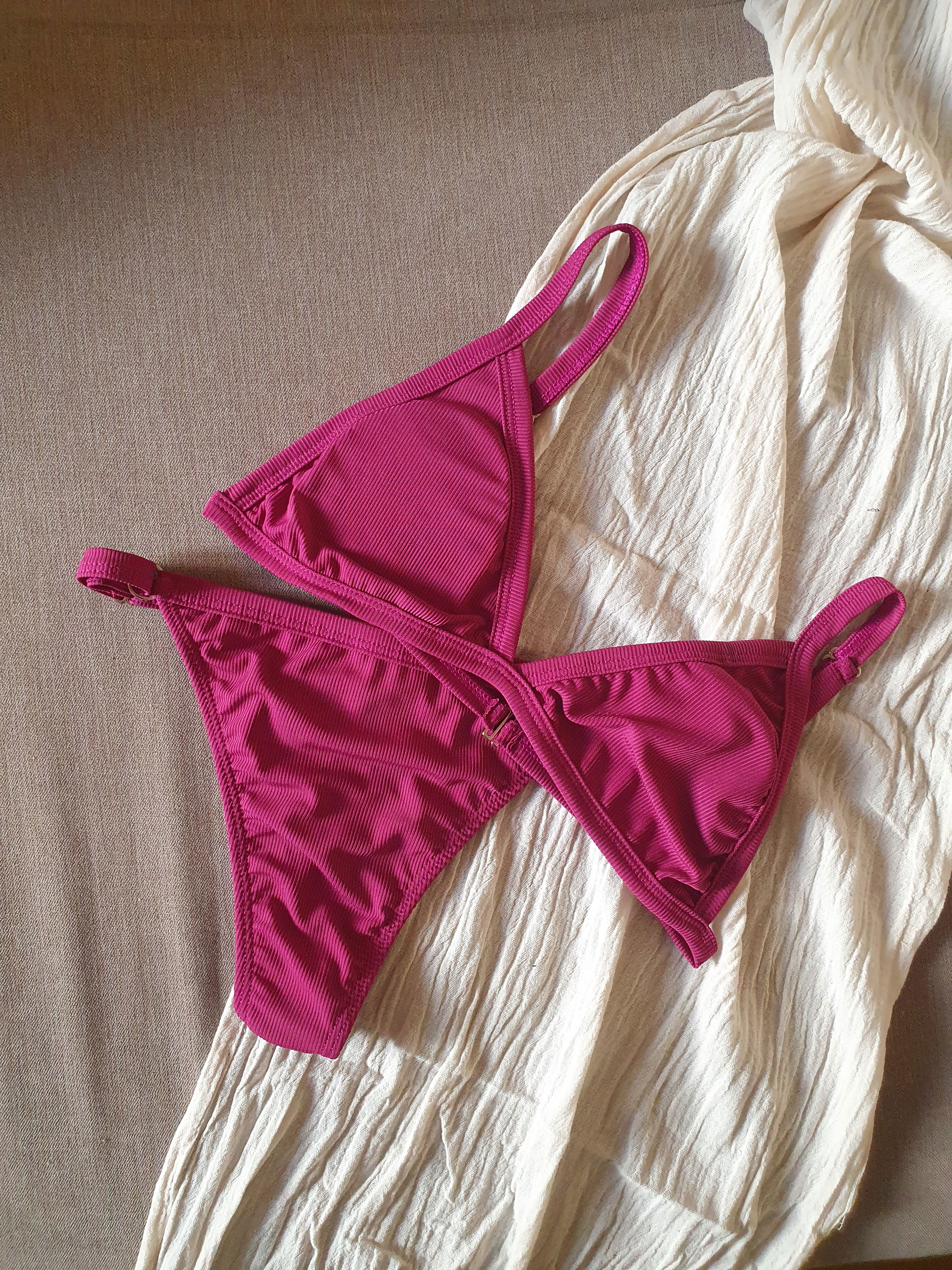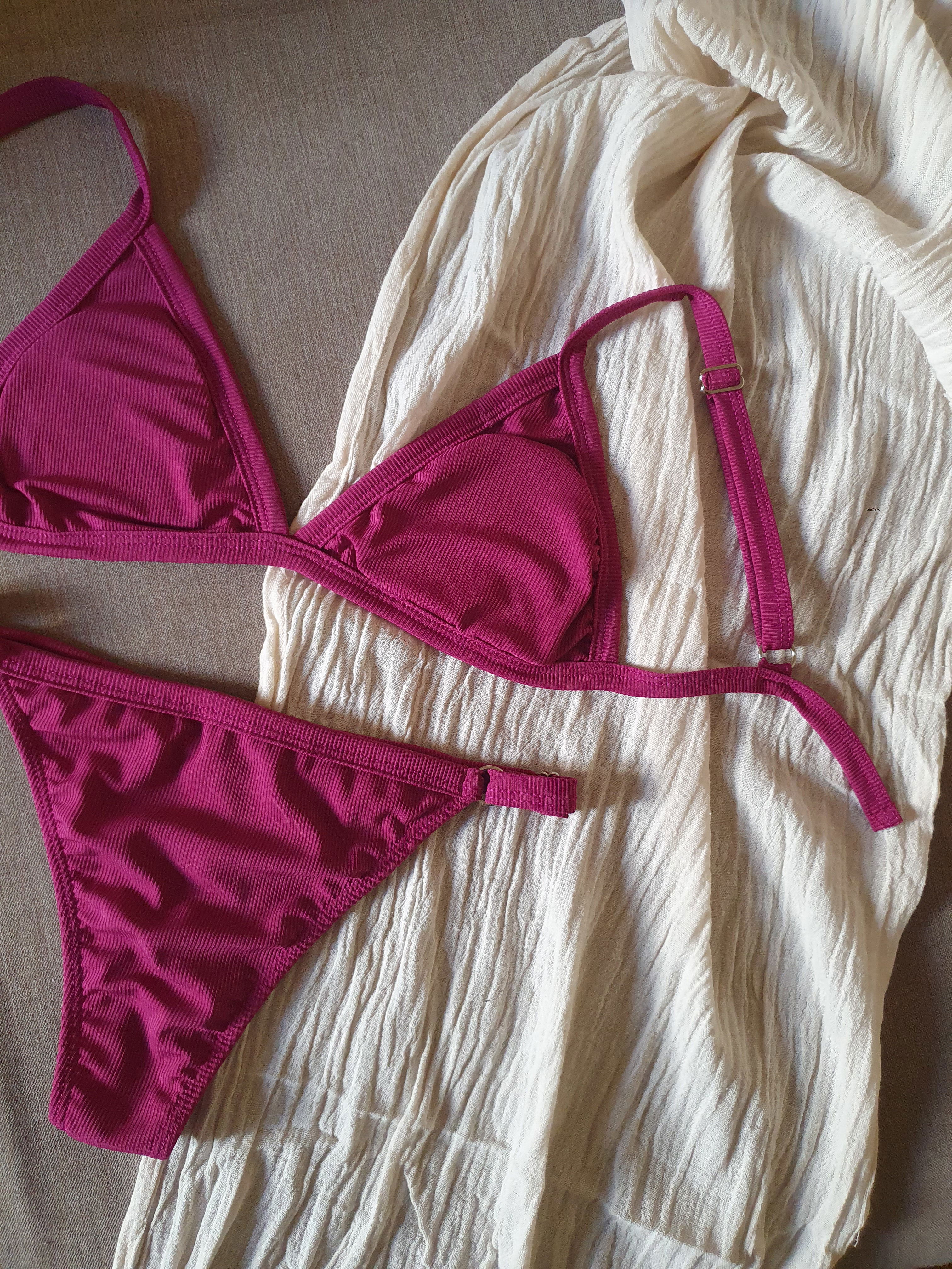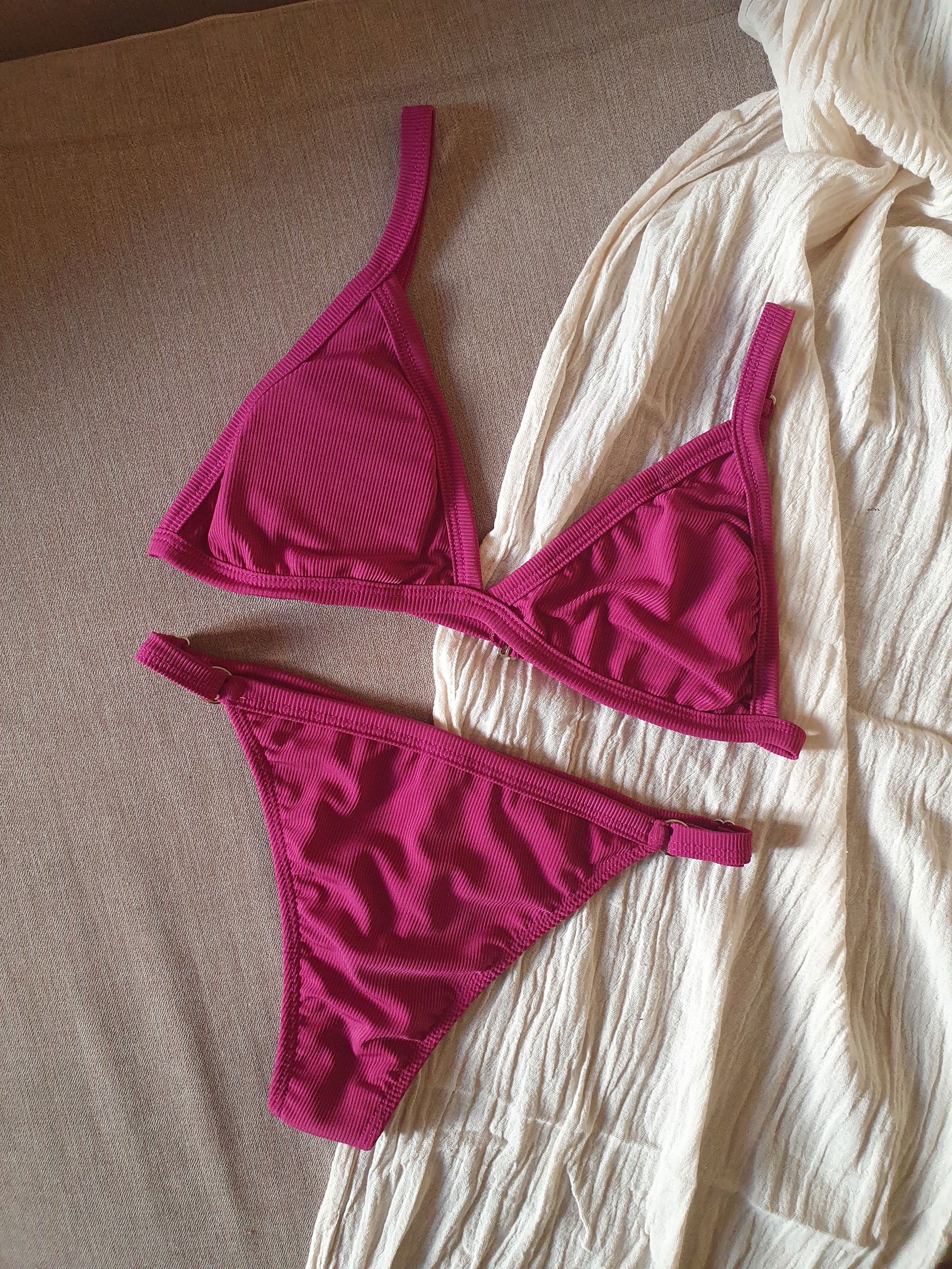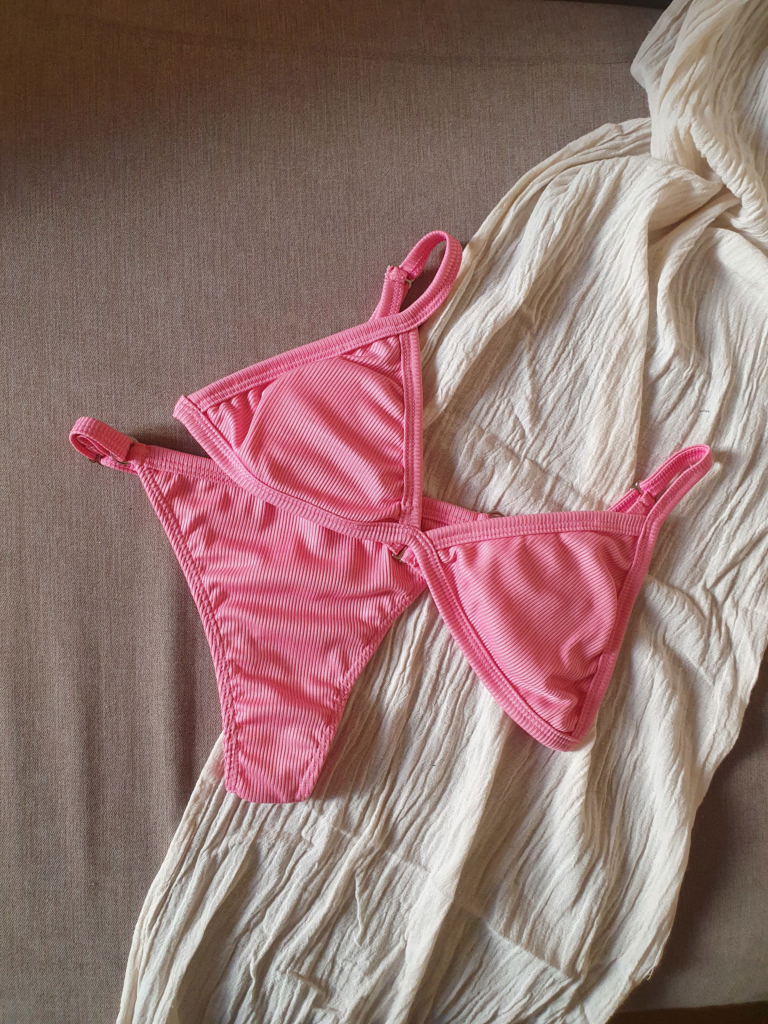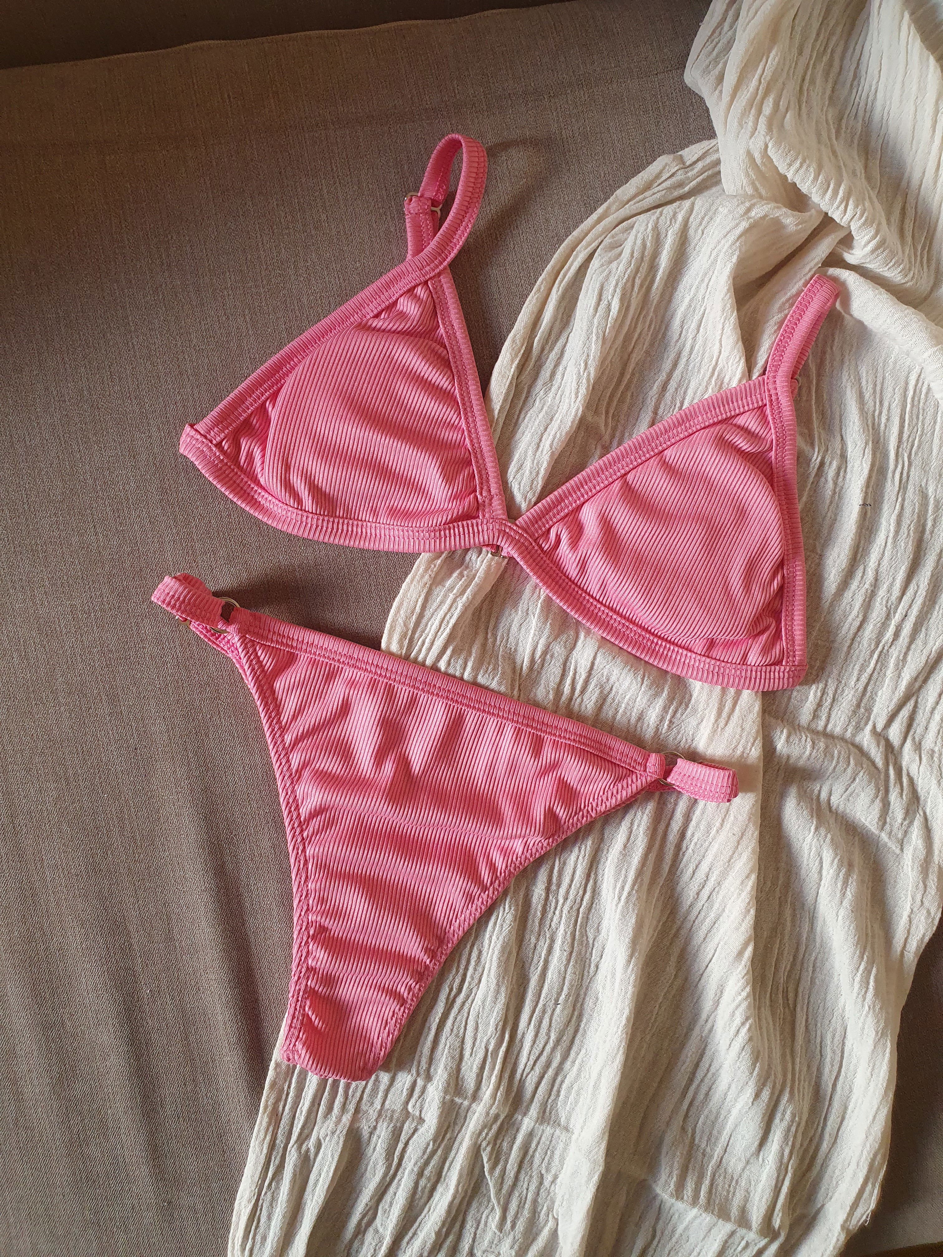 Bikini Confeccionada en morley fino con breteles regulables en corpiño más apertura para tasa desmontable y cola less regulable de 12cm
