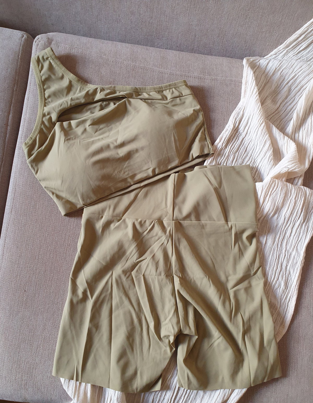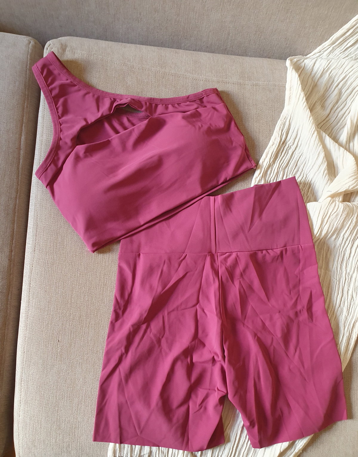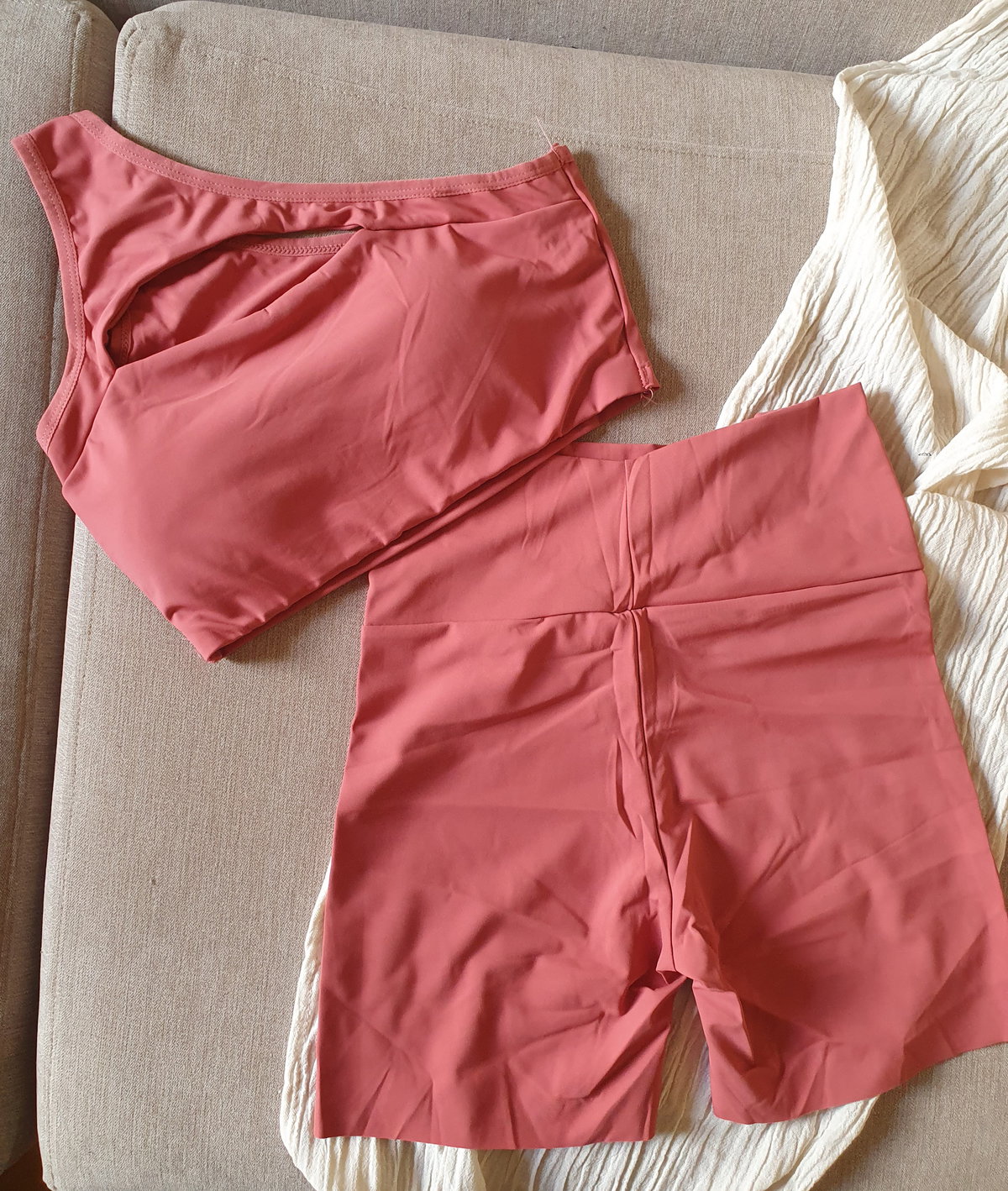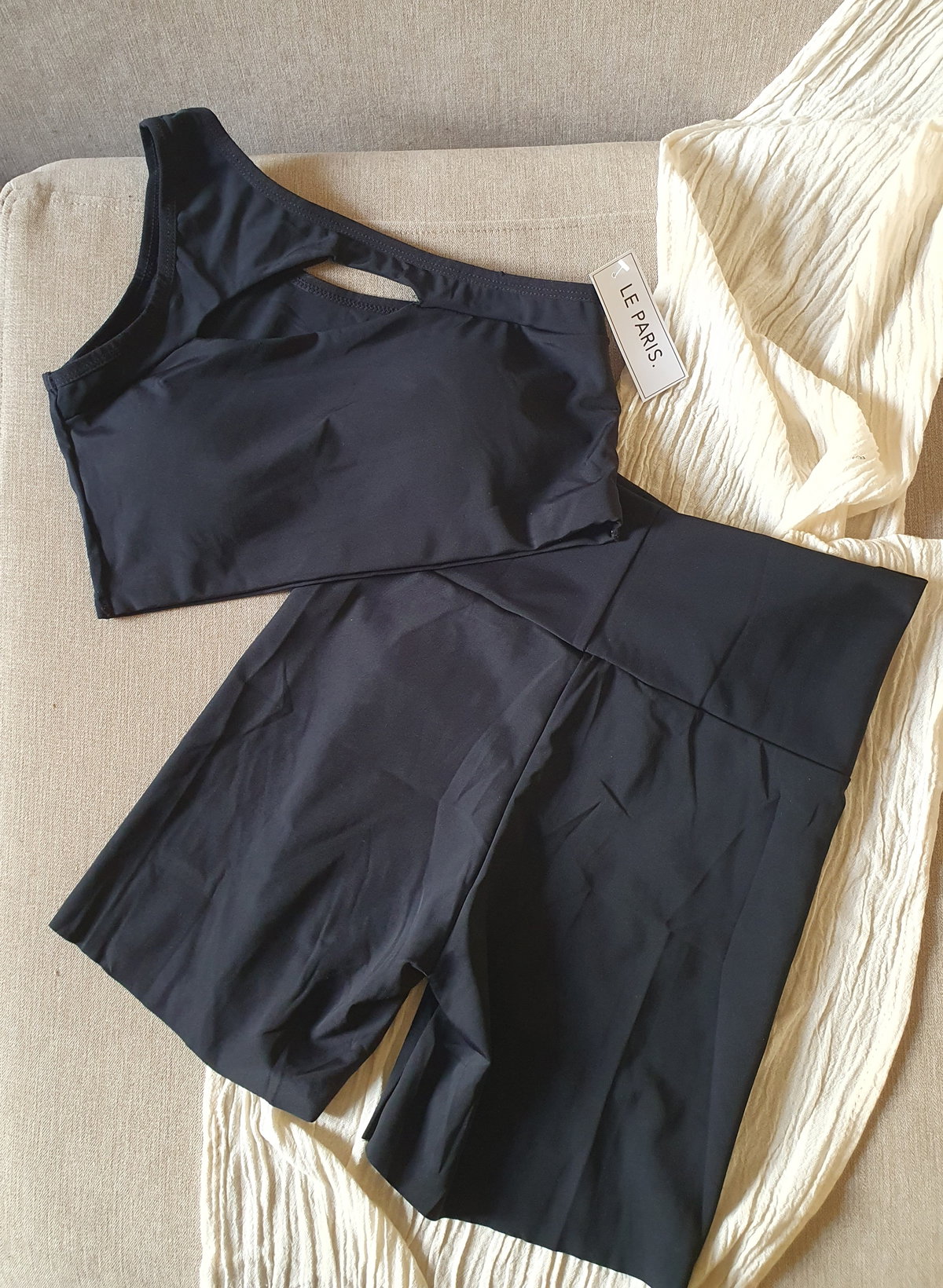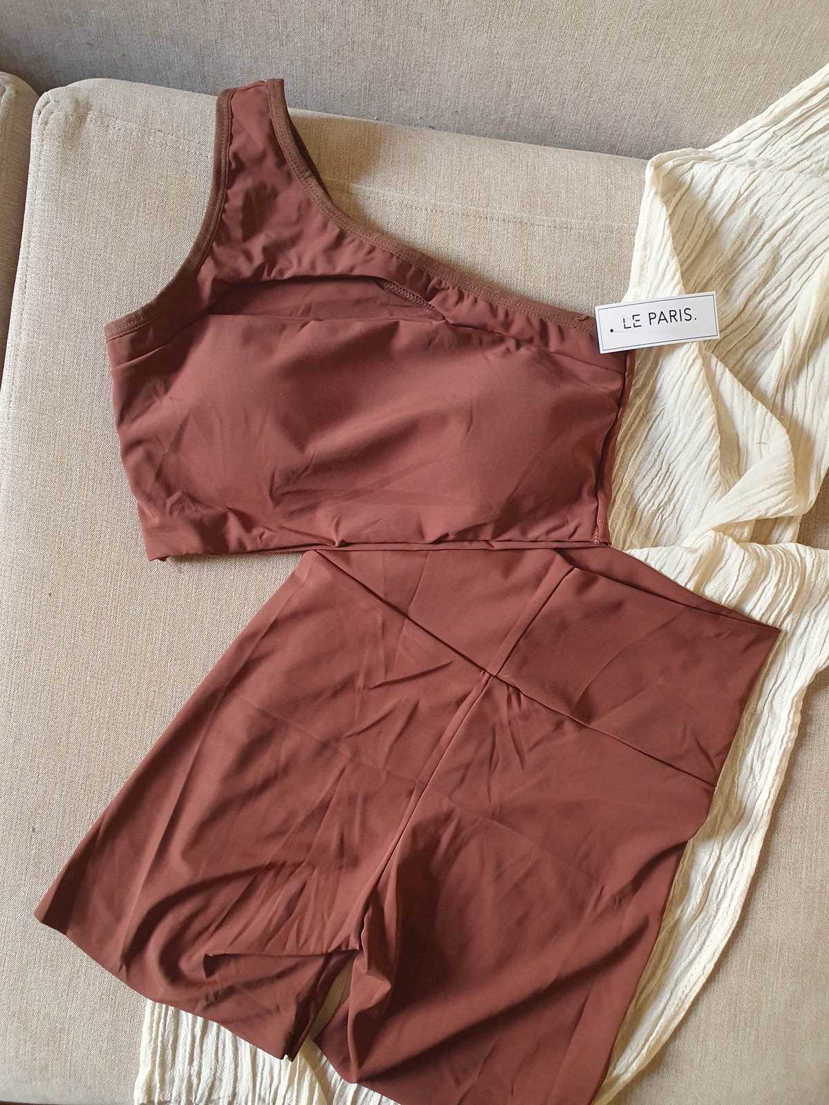 Set deportivo suplex en complemento perfecto, top un hombro con detalle, trae tasas desmontables mas biker