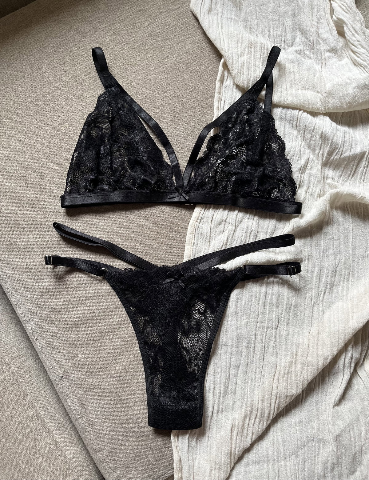 Diseñado en encaje, este set rompe los moldes con sus detalles strappy que dibujan y resaltan tus curvas de manera espectacular.