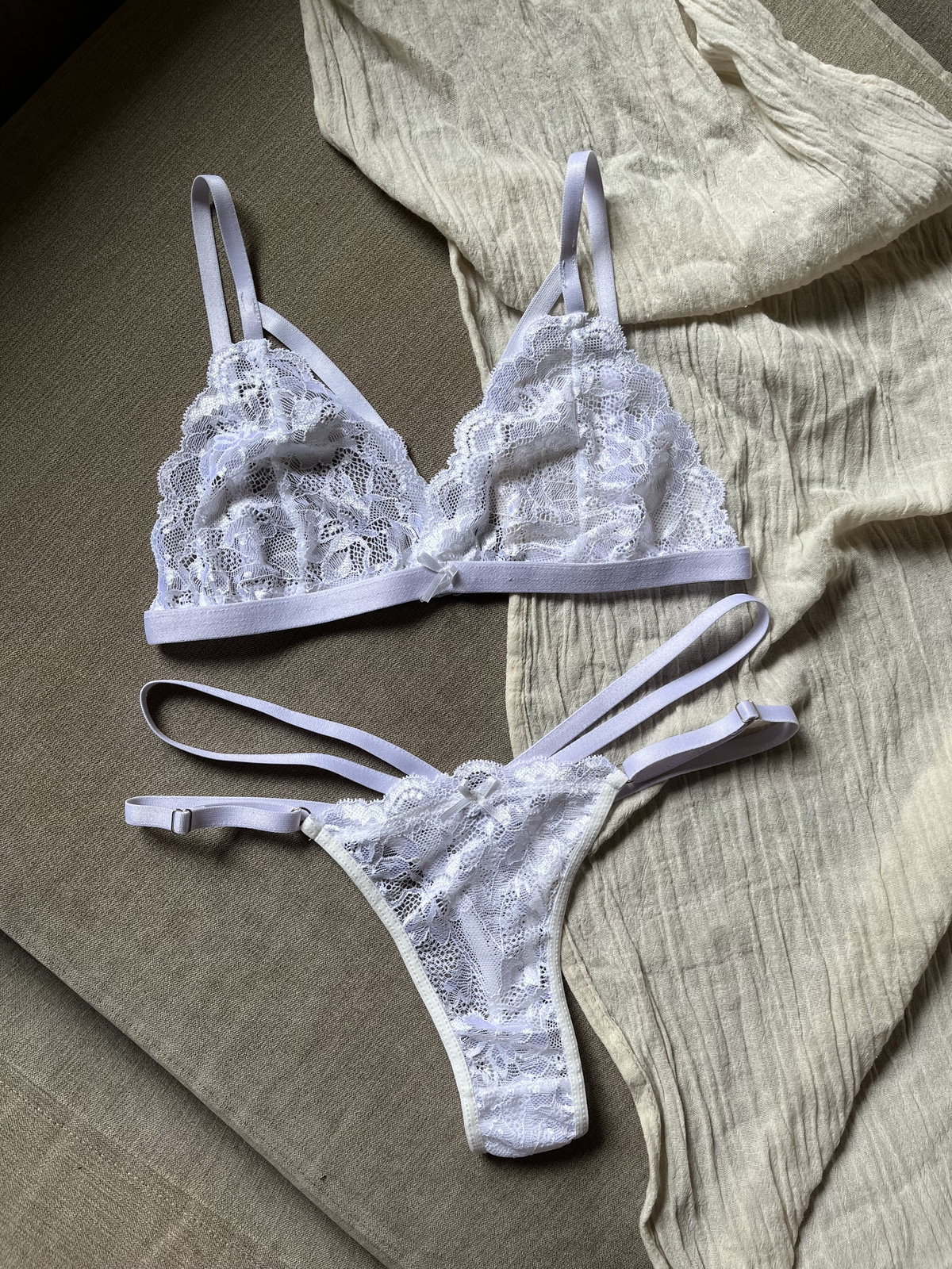 No es solo lencería, es una actitud. El diseño de tiras en el escote y en la cadera crea un efecto visual hipnótico, aportando ese toque picante a la elegancia del blanco clásico.