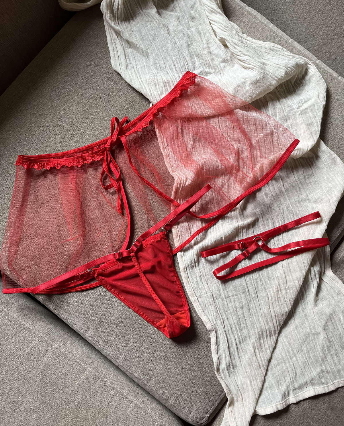 ¿Lista para subir la temperatura? Elevamos el concepto de lencería con un set que es puro fuego y misterio. Combina la delicadeza del tul traslúcido con la fuerza de un diseño de tiras que enmarca tus curvas como nunca antes. Su falda de tul ajustable aporta ese aire etéreo y sugerente, mientras que el arnés de cintura define tu silueta con un toque rebelde y ultra sexy, y la less es el detalle infaltable que vuelve único!