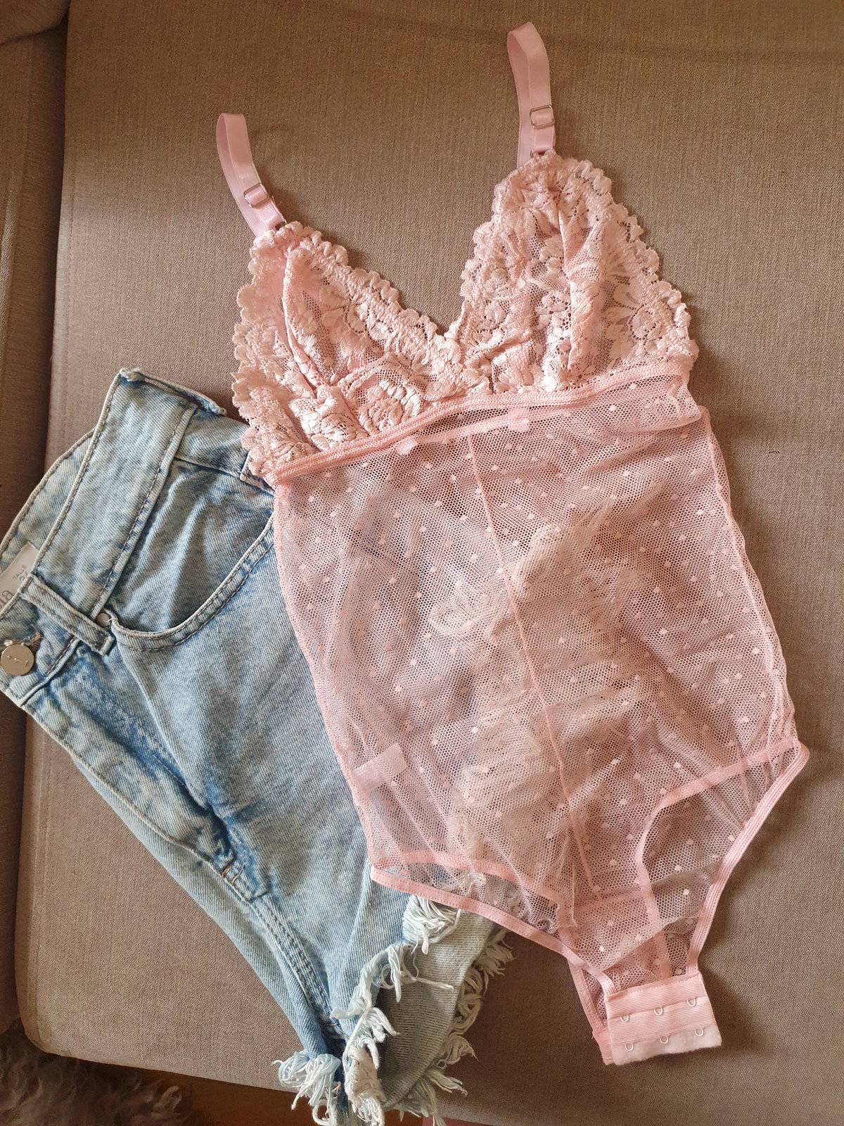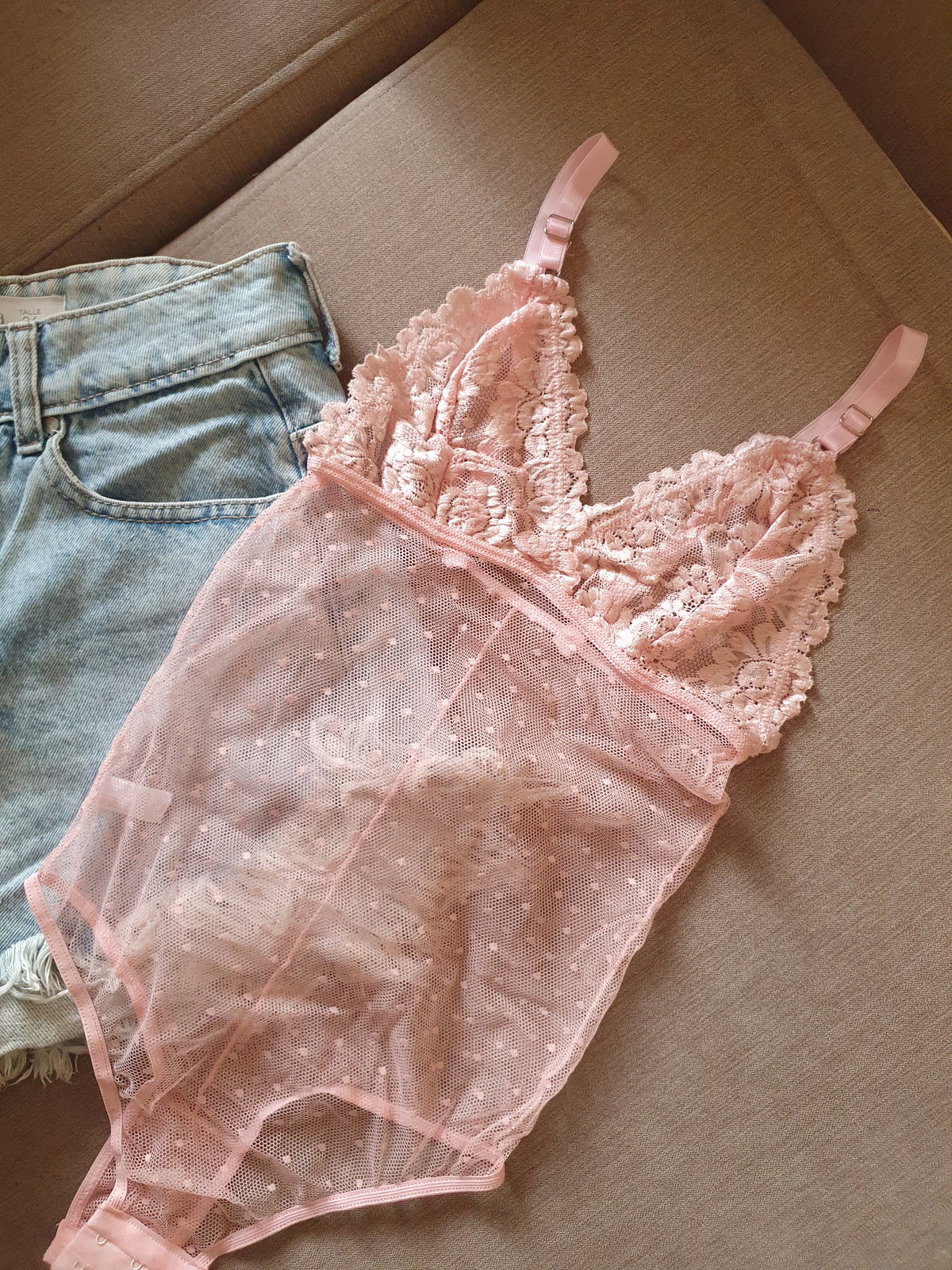 BODY DE MICROTULL CON BUSTO DE ENCAJE, BRETELES REGULABLES, Y ESPLALDA CON GANCHO