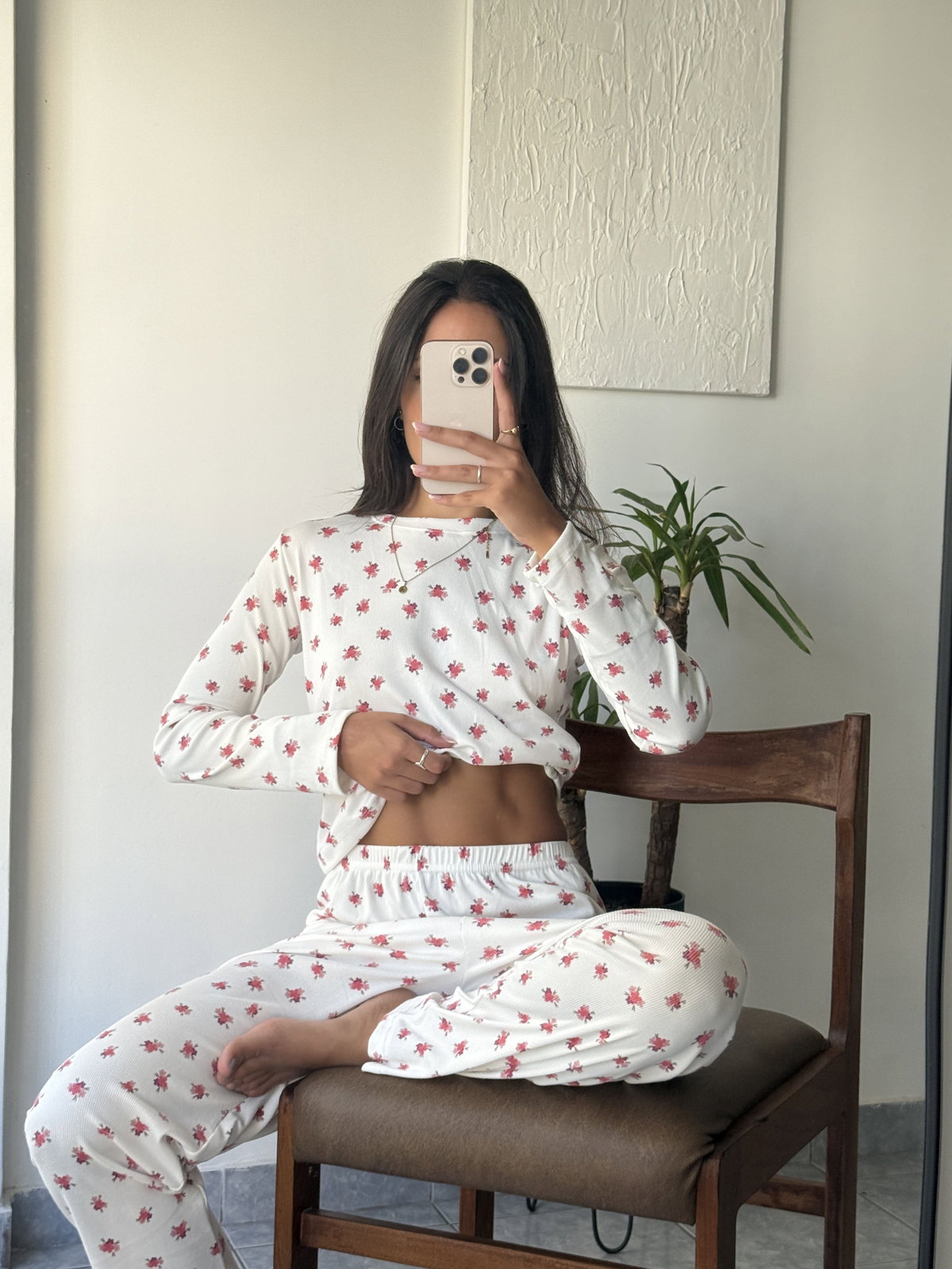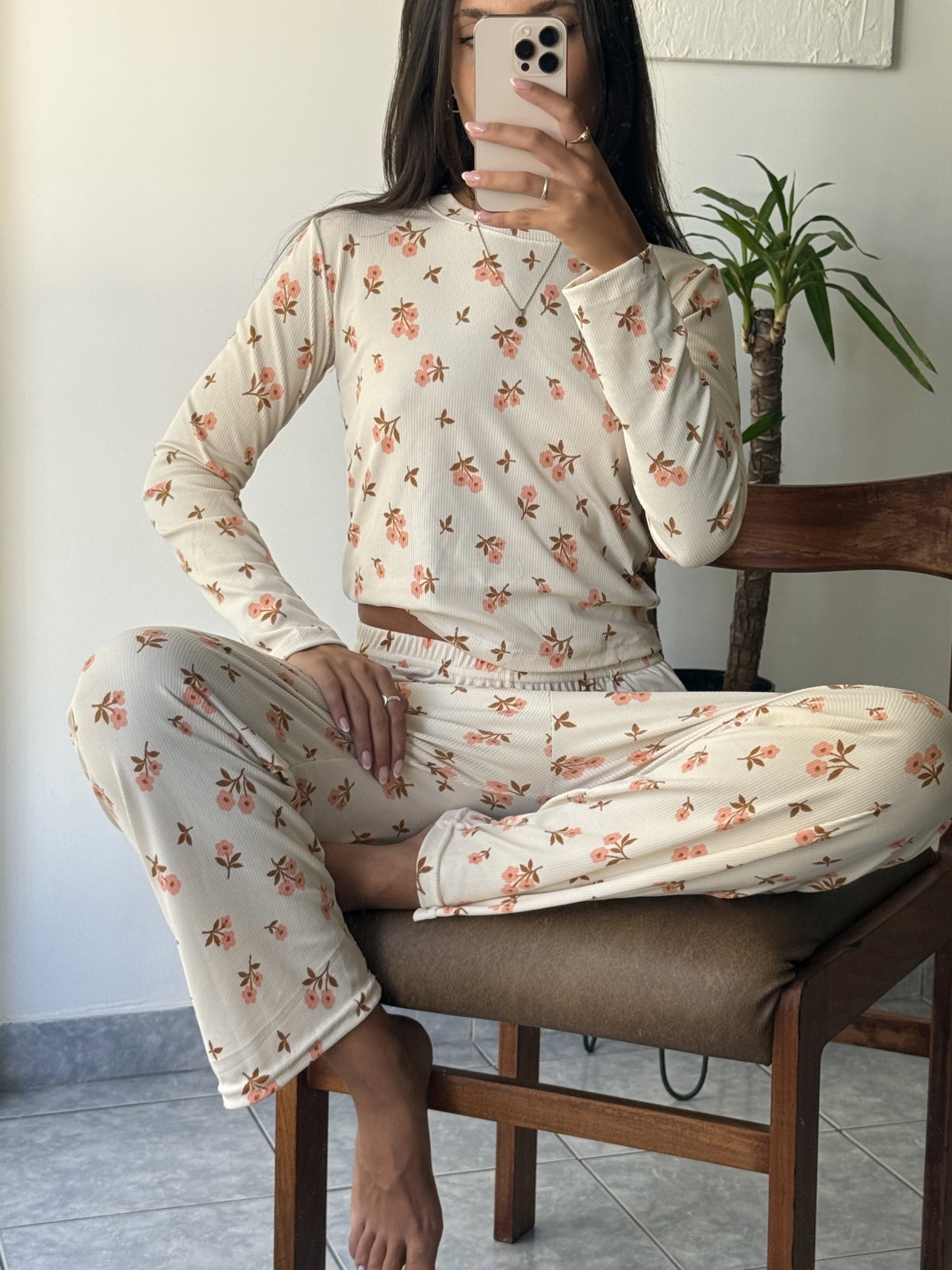 Pijama de dos piezas compuesto por remera manga larga y pantalón largo, confeccionado en morley de alta calidad. Su textura acanalada permite una excelente caída y adaptabilidad al cuerpo.