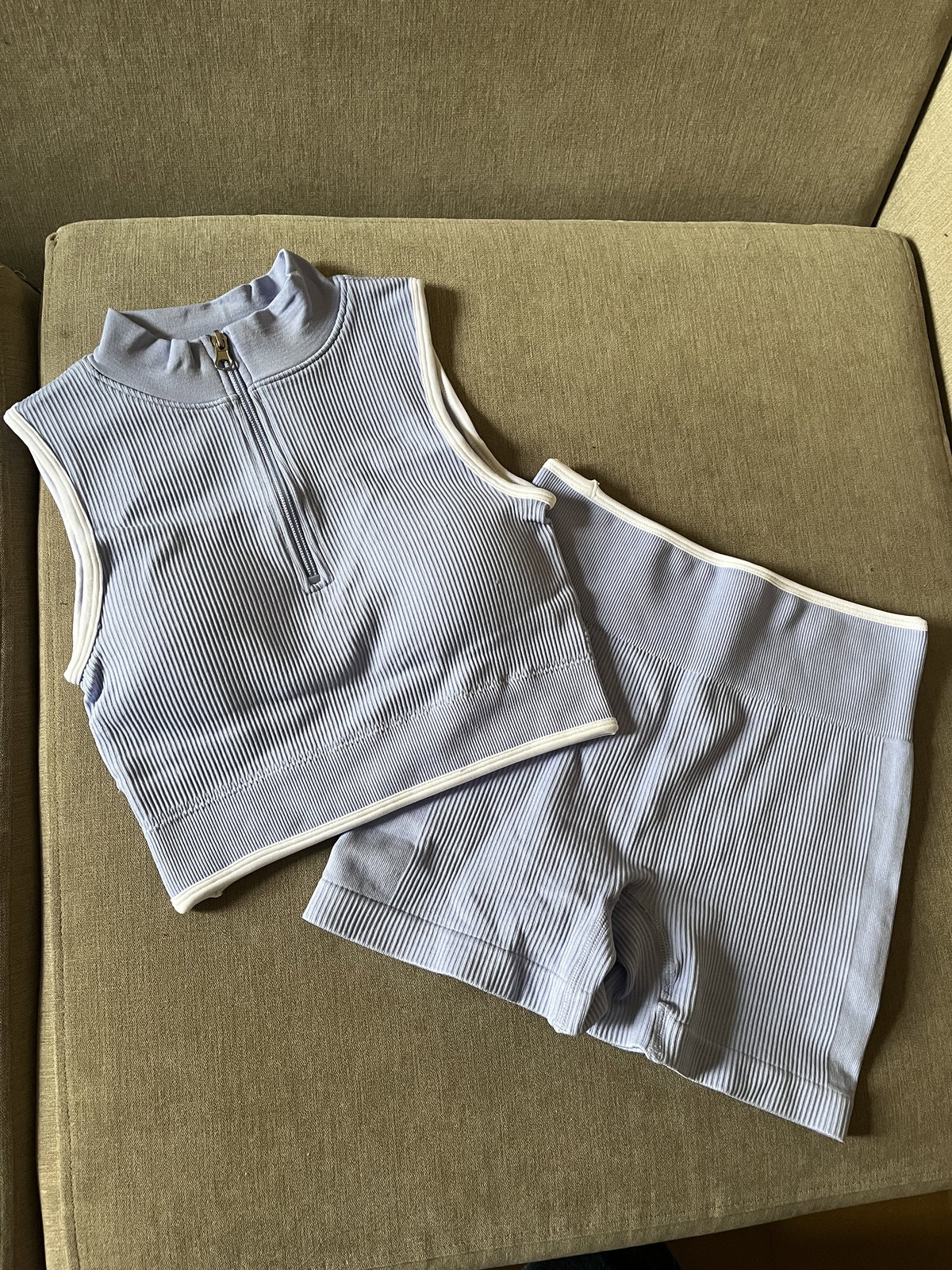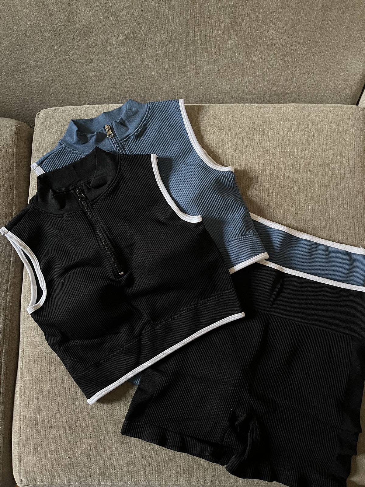top con cierre tasas desmontables y detalles blancos en bordes más short pretina alta para mejor agarre y sujeción